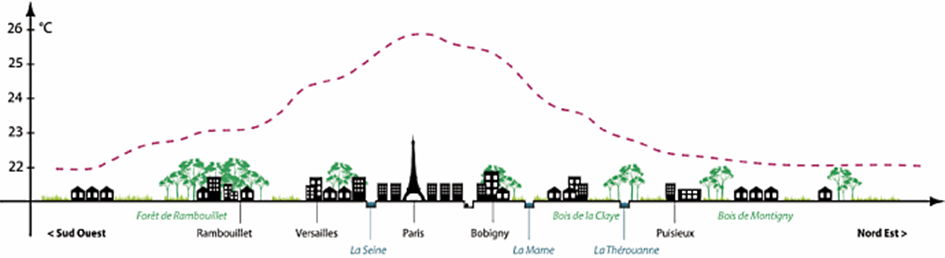 Limiter les effets d’ilot de chaleur est un enjeu de premier ordre pour conserver des milieux urbains agréables à vivre dans nos dans les villes, agglomérations et métropoles. En Île-de-France, environ 25% des emprises artificialisées, dont environ 200 000 hectares urbains construits. Que cela touche des zones commerciales, des locaux d’entreprises, ou bien des quartiers résidentiels, actuellement, 1 Francilien sur 2 vit dans un îlot avec effet de chaleur.