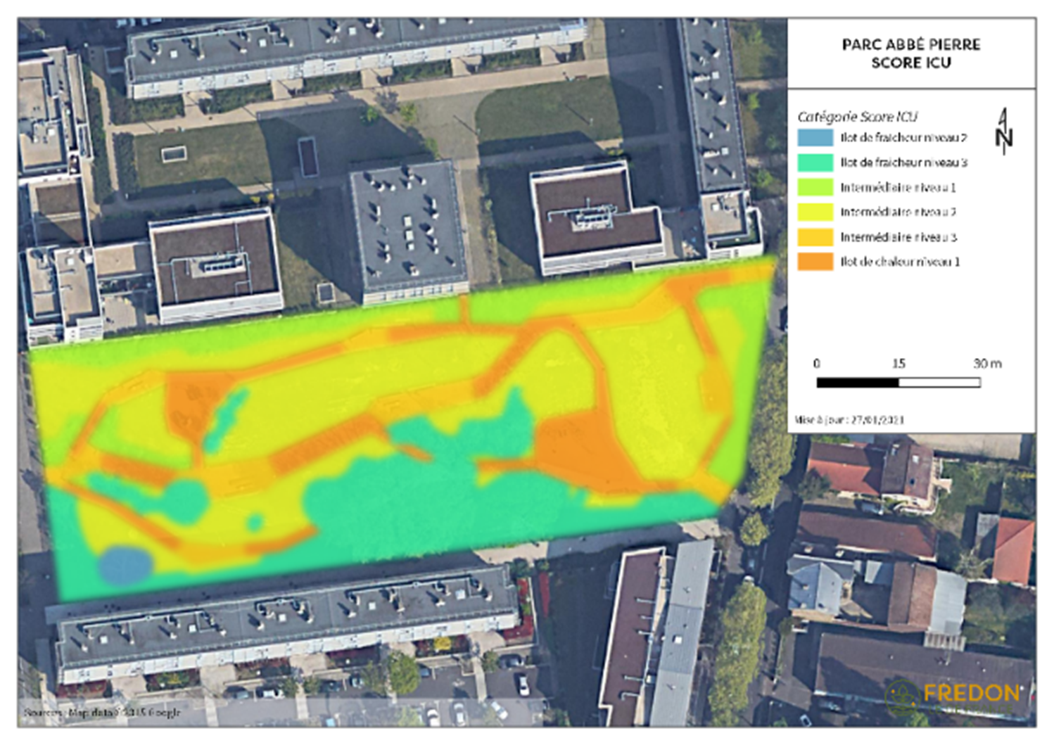 Une première étape consiste à caractériser, identifier ou anticiper les Ilots de chaleur. Où sont situés les ilots de chaleur ? Vos aménagements, vos bâtiments, votre entreprise, induisent-ils un Ilot de chaleur ? C’est bien à cette échelle « micro » que l’analyse peut mener à identifier ce qui contribue à l’effet d’ICU.
